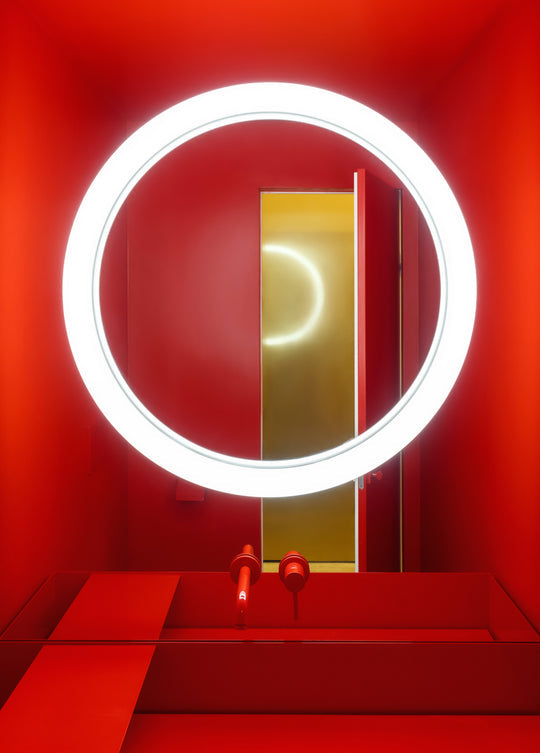 Harry Nuriev, the founder and principal designer of Crosby Studios, is known for his minimalistic and philosophical design that marries geometric primaries with crisp logic. These circular neon signs not only provide a source of illumination, but offer a compelling focal point that enhances any aesthetic experience.
