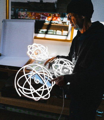 The collection seamlessly blends the raw, expressive elements of urban graffiti art with the mesmerizing glow of LED neon illumination, resulting in a captivating fusion that pushes artistic boundaries.