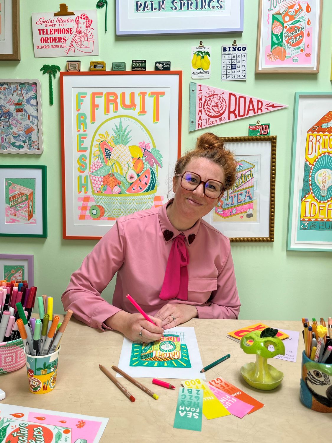 Jacqueline Colley is a London-based illustrator and print designer celebrated for her whimsical, pattern-rich style filled with vibrant color, playful details, and hand-drawn charm. Her work often explores themes of nostalgia, nature, and curated chaos—bringing everyday scenes to life through intricate compositions and joyful storytelling. With a background in textile design, Colley’s signature aesthetic has led to collaborations with renowned brands such as Anthropologie, Google, Twitter, Flow Magazine, and the Natural History Museum. Beyond commercial projects, she frequently runs creative workshops and produces her own line of illustrated products from her East London studio.