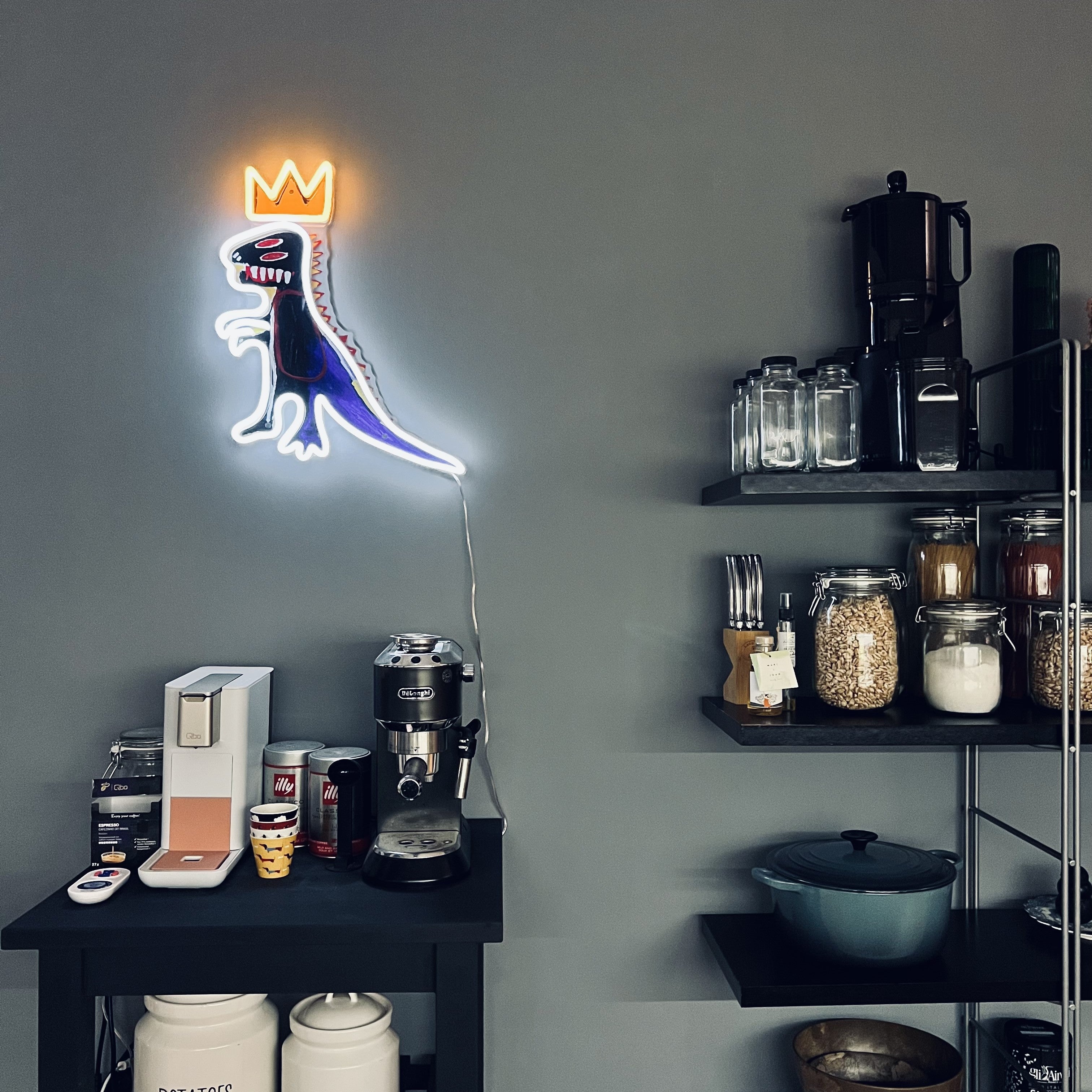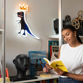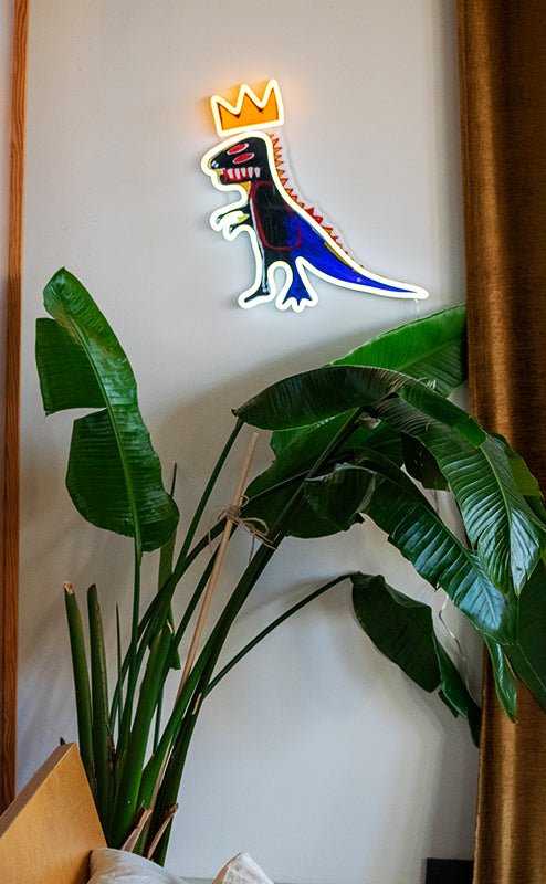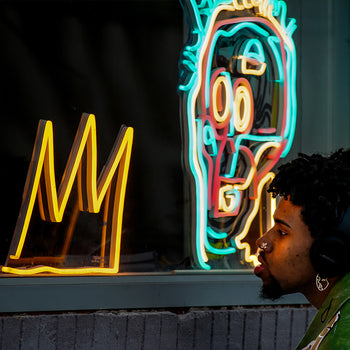 Jean-Michel Basquiat (1960–1988) was a trailblazing artist known for his raw, expressive style that blends street culture with fine art. His works explore complex themes like identity, race, and power. This exclusive collaboration with Yellowpop brings Basquiat’s iconic imagery to life in vibrant neon art pieces, including symbols like the crown and dinosaur. These pieces highlight his artistic legacy while reimagining his bold visuals for modern interiors. Basquiat's work continues to inspire, now illuminated for all to appreciate.
