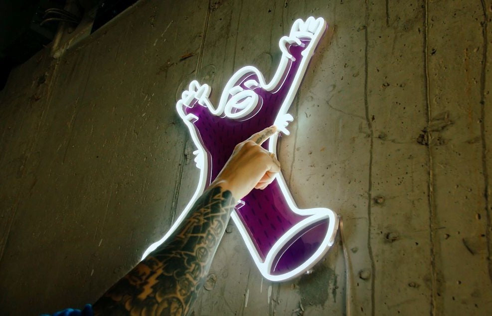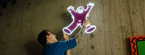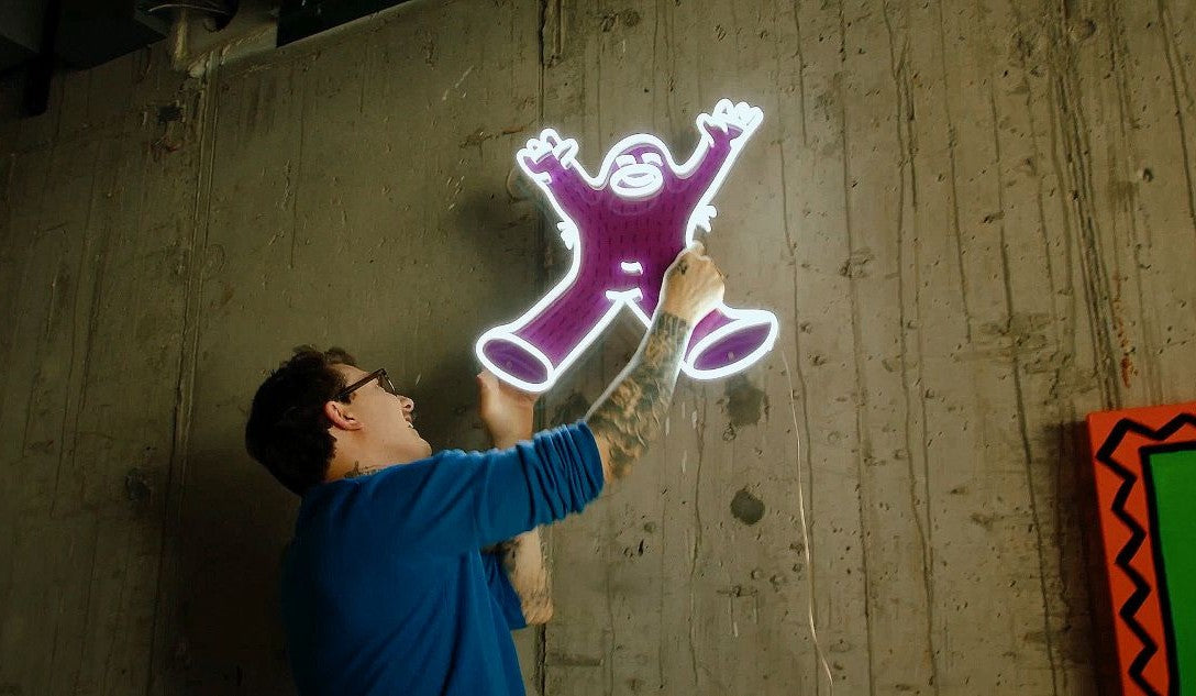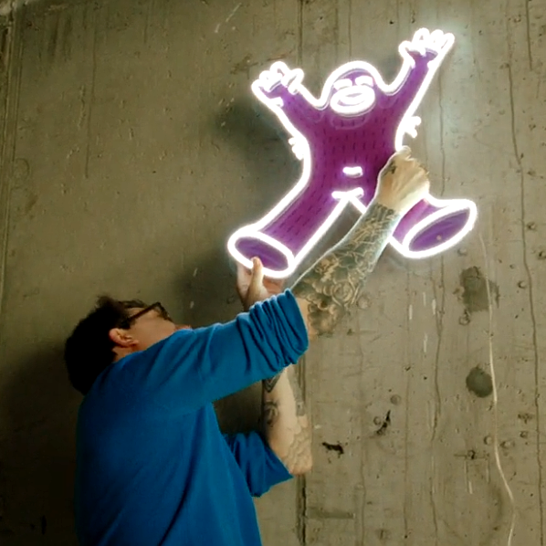 From towering murals to glowing screens, Frank Ape lives in color—his message of hope and community shows up in unexpected places.