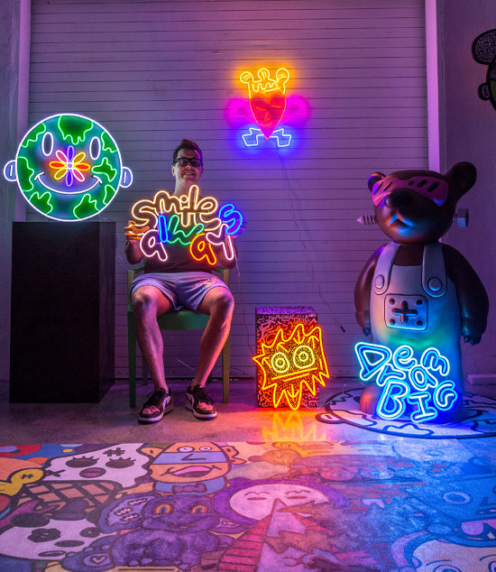 Vic Garcia and Yellowpop have one very important thing in common: we both use art to brighten up the world! We’ve come together to do this with 5 all-new LED neon signs, designed by the brilliant artist. Each comes with a certificate of authenticity, taking each piece from bright to brilliant.