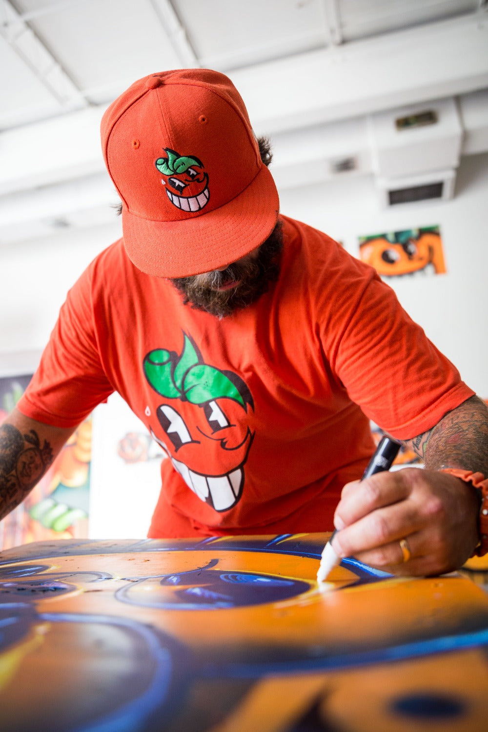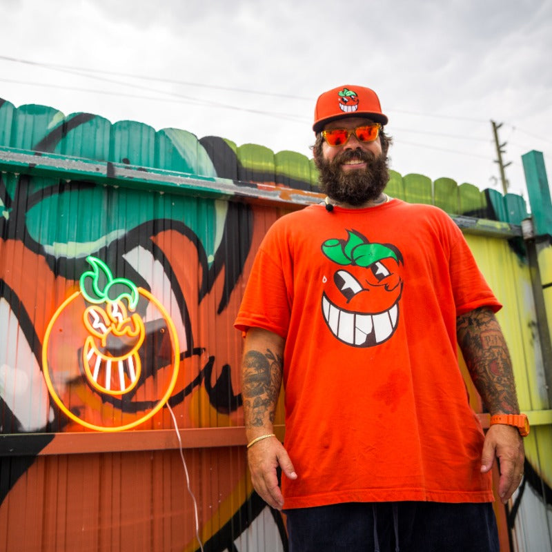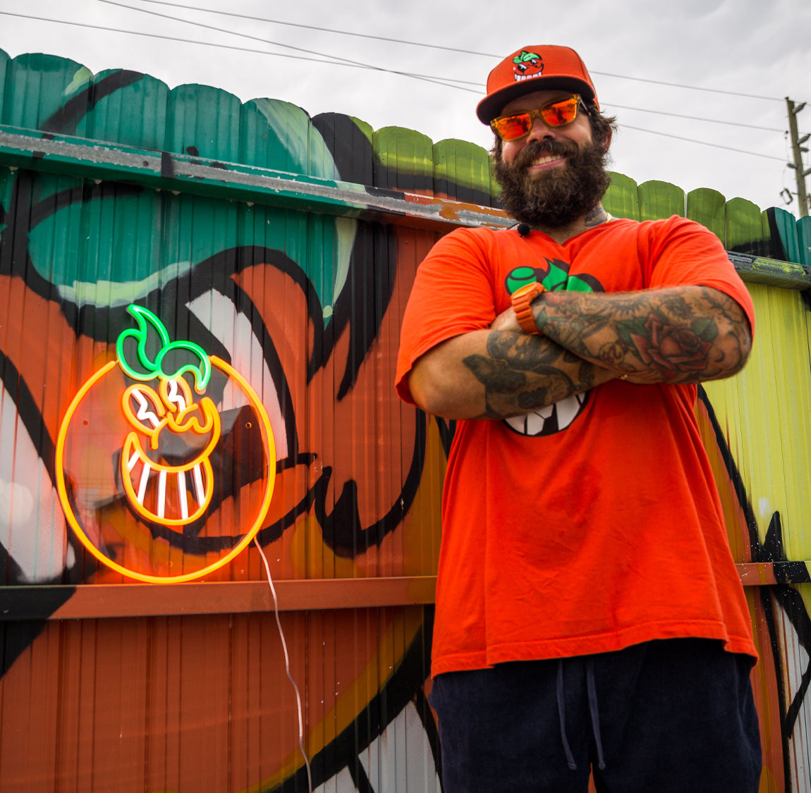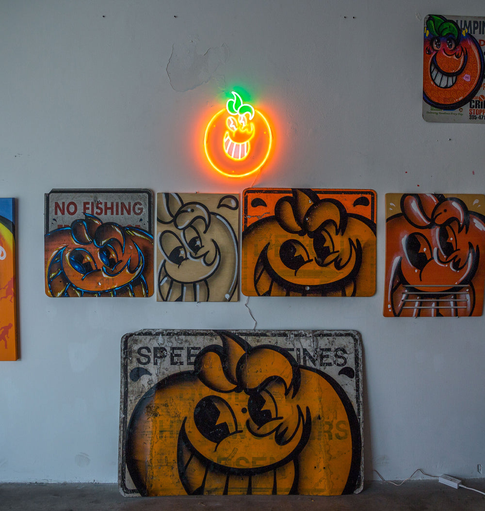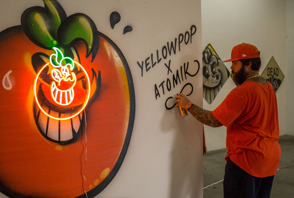 ATOMIKは、マイアミ生まれのアーティストです。グラフィックデザインを専攻し、マイアミのアートシーンで名を馳せています。80年代に台頭してきたマイアミのグラフィティシーンで育ち、ATOMIKは若い頃から、後に彼の職業となるものを目の当たりにしてきました。マイアミ・オレンジボウルの破壊に反発して生み出された、象徴的なオレンジ色のキャラクターで知られるATOMIKは、洗練されたハンドスタイル、グラフィティ、レタリングでマイアミの街を彩っています。彼の独特なオレンジ色のキャラクターは、チリ、ペルー、コロンビア、ブラジル、アルゼンチン、メキシコ、オランダ、ドイツ、イタリア、スペイン、イギリス、オーストラリア、韓国、タイなど、世界各地に描かれ、マイアミの雰囲気を漂わせています。