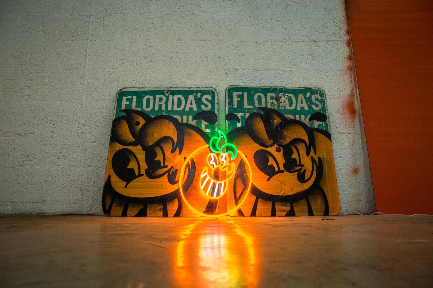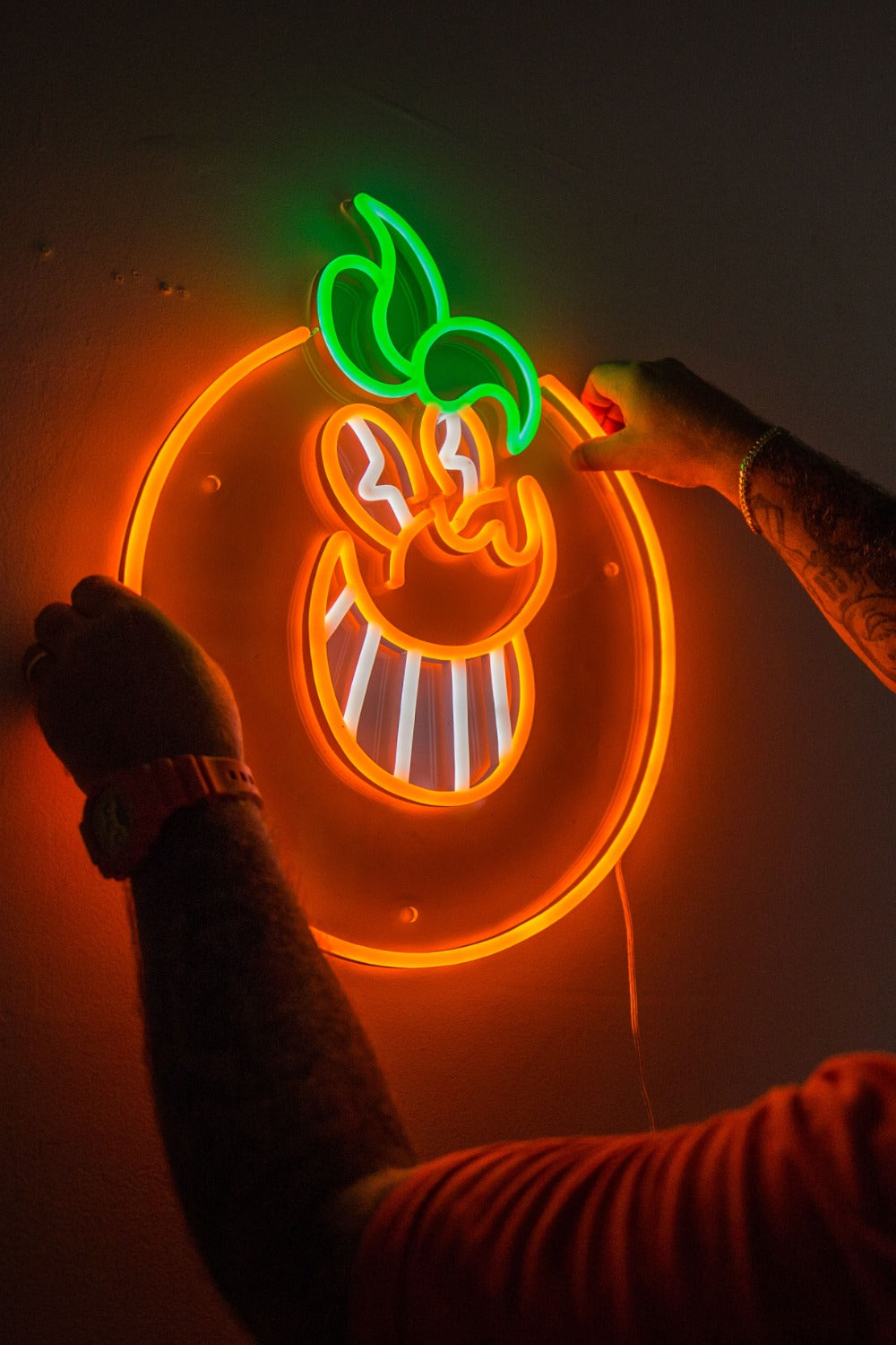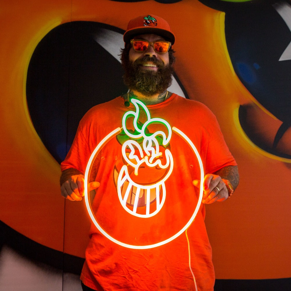 このLEDネオンサインは、マイアミで人々の心を掴んだ象徴的なオレンジ色のキャラクターを際立たせています。芸術とネオンが融合し、創造性と輝きが融合しています。