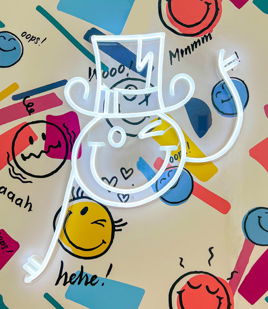 遊び心のあるA夫妻、シルクハットをかぶったマジシャン、そして踊る人形が、象徴的なスマイリーフェイスの要素と融合し、お子様の空間を明るく彩る5つの新しいLEDネオンサインが誕生しました。プレイルームでも寝室でも、お子様がきっと気に入るカラフルでクリエイティブな空間を演出するのにぴったりです。