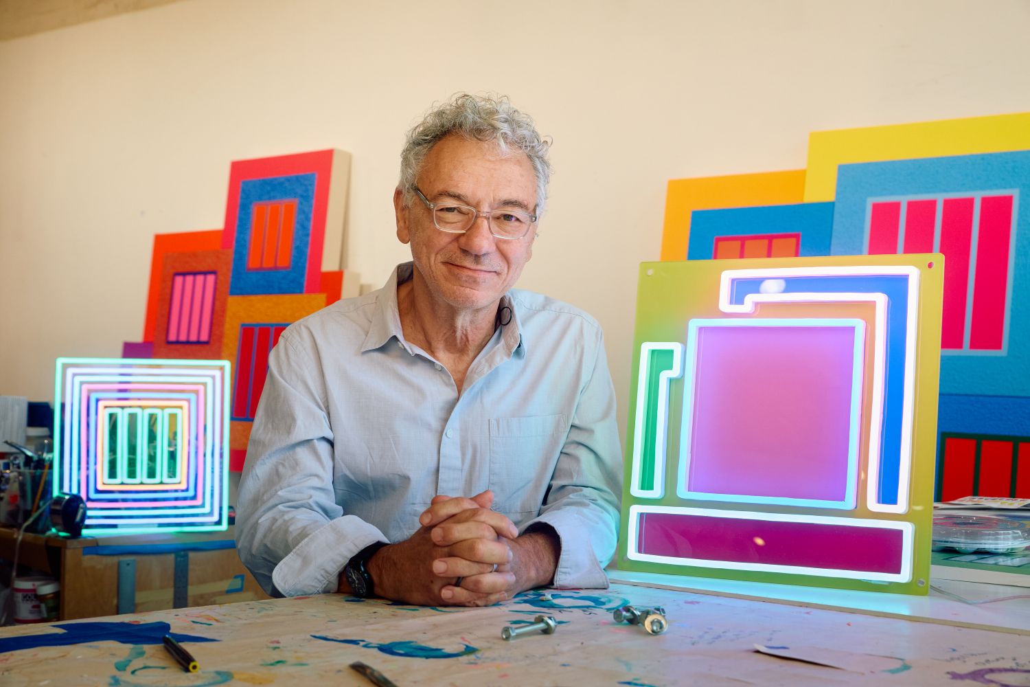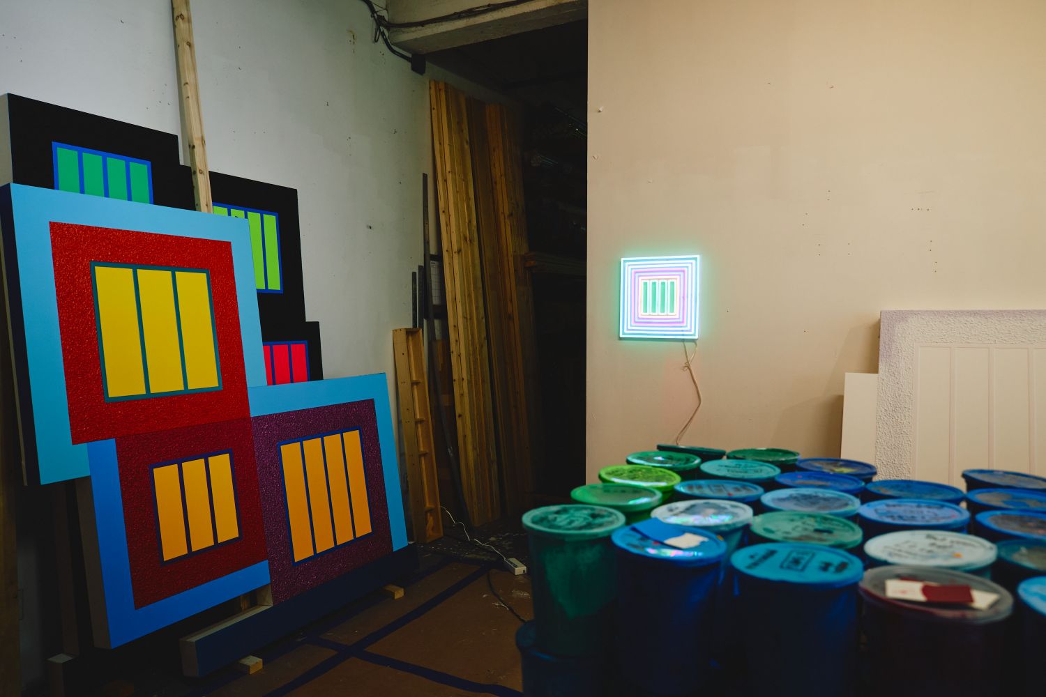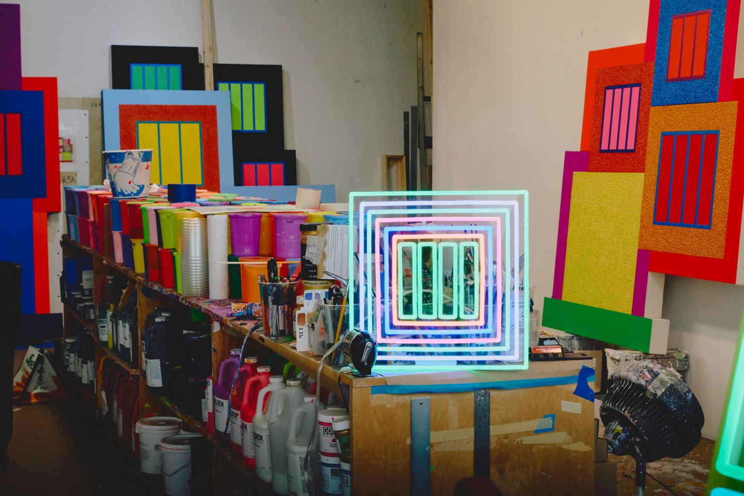 ピーター・ハリーの象徴的な細胞と導管が、この特別なネオンアート作品で生き生きと表現されています。