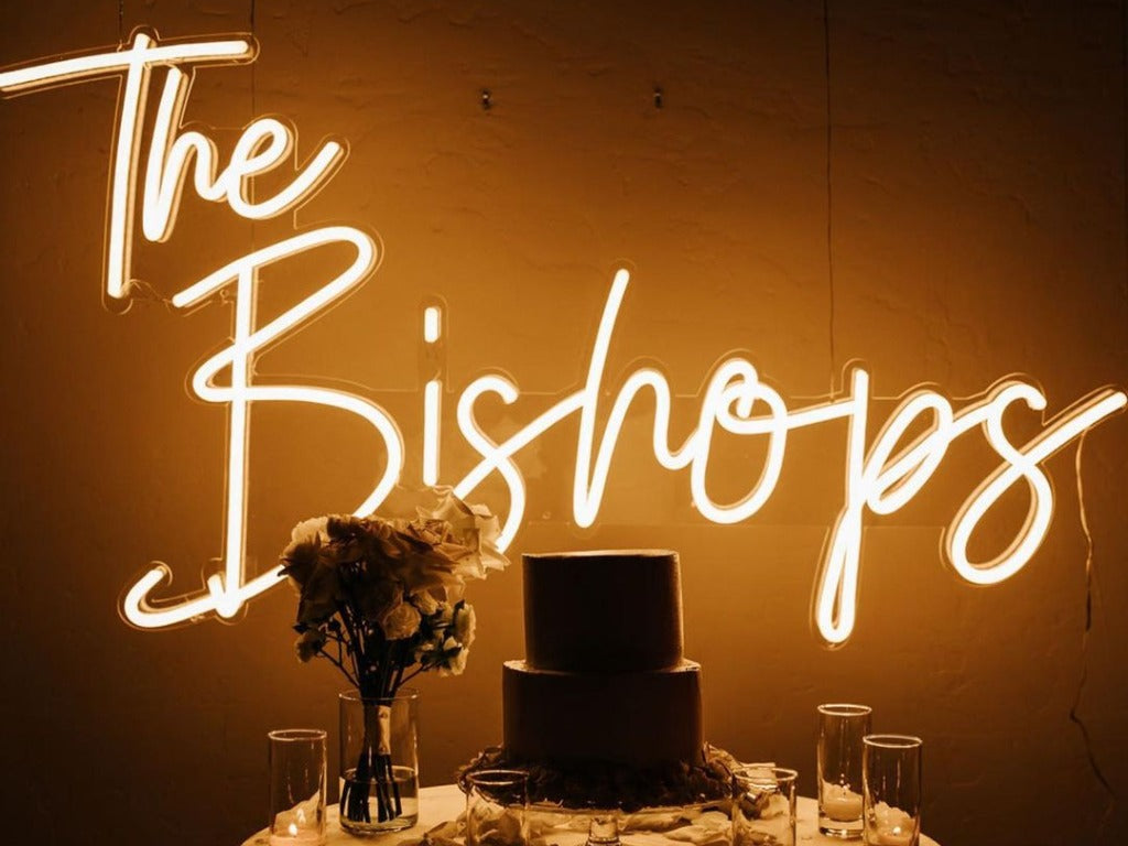 We love the way these newlyweds used their yellowpop sign to call attention to the bride and groom’s table. And who doesn’t love celebrating your shared last name?
