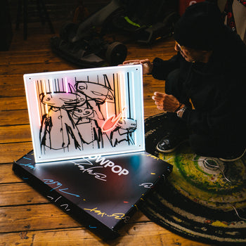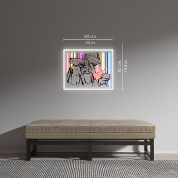 A captivating fusion of abstraction and luminosity, this LED neon sign showcases the artist's visionary talent in an electrifying form. Vibrant colors and fluid lines intertwine, creating a mesmerizing composition that transcends conventional boundaries. Prepare to be immersed in a radiant world of abstract brilliance, where art and technology unite to captivate the senses.