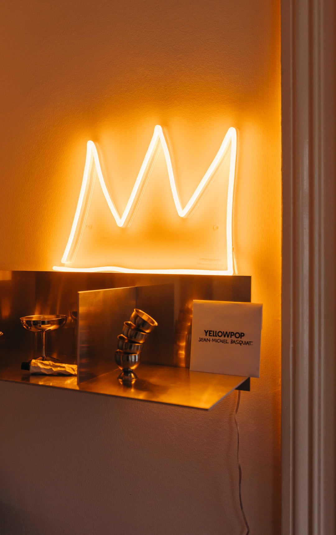Cast a royal glow in your space with Yellowpop's 'King's Crown' LED neon sign, a piece that channels the spirit of Jean-Michel Basquiat's admiration for the emblematic crown. The crown's simple yet striking outline in neon captures the essence of regality and artistry, embodying Basquiat's influences' playful yet profound nature. Bathed in the warm aura of this neon crown, your room transforms into a personal kingdom of style, creativity, and nostalgia. It’s more than just a decorative piece; it’s a tribute to the crowns sketched on the screens of Basquiat's youth, a beacon of inspiration that brings the good vibes of a cultural icon into your home.