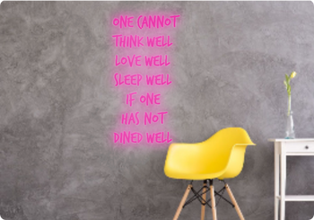 Custom text: One Cannot Think Well Love Well Sleep Well If One Has Not Dined Well LED neon sign