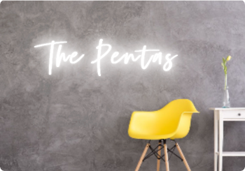 Each sign is made of a neon flex material, consisting of PVC or Silicon piping with LED lights, that is mounted on a recycled acrylic board. These materials allow us to create realistic neon signs, with bright lights and intense color, while being more durable, affordable, and sustainable than traditional neon.