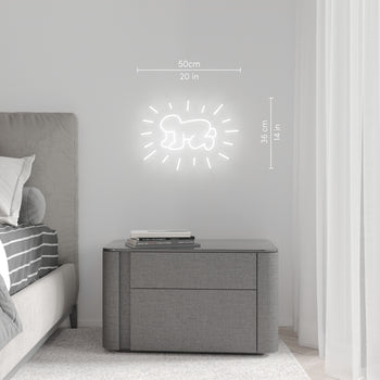 Keith Haring's iconic pop art style comes alive in this exclusive neon art piece.