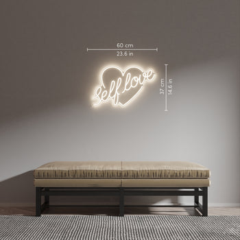 Shine uplifting light into your space with this limited-edition LED neon sign! It is designed in the style of Parisian tattoo artist Jean André, featuring a heart with the word “Self-Love” in cursive typography. This sign is available in two sizes, and you can further personalize the artwork with a generous choice of colors. Change the light depending on your mood with adjustable brightness.