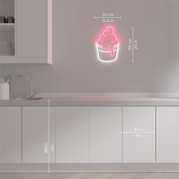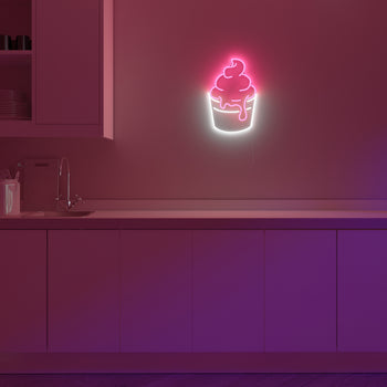 You made it. You're here. You've finally discovered the sign that makes your heart sing and your dreams come true. That's right folks, here's the glowing soft serve ice cream in a cup you've been dreaming of all your life and craving always. Now it's here in a handsome white and pink LED neon glow for you to display in any room, venue, or event space so you and your guests can devour it with your eyes and never go without again.